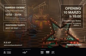 Paratissima e Cavallerizza danno il via a un nuovo anno ricco di mostre, eventi ed appuntamenti. Due i progetti espositivi che inaugurano il nuovo corso, “LaNotteS’Avvicina” di Fabrizio Cicero ospitato nella Manica del Mosca della Cavallerizza e “Paratissima Talents” con i 15 artisti emergenti premiati nella passata edizione di Paratissima Circus 2022 e in esposizione nelle Scuderie. Le due mostre sono ad accesso libero.(Piazzetta Accademia Militare, 3.) LaNotteS’Avvicina di Fabrizio Cicero è un’installazione immersiva, una poetica mise en scène di stelle comete, che illuminerà la Manica del Mosca della Cavallerizza. Per l’occasione, lo spazio espositivo resterà buio, irradiato esclusivamente dalla luce delle lampadine a incandescenza delle 9 luminarie originali del 1980, cui l’artista ha dato nuova vita nelLa mostra è a cura di Francesca Canfora e Laura Tota, prodotta da H501. Quest’anno i prestigiosi spazi delle Scuderie della Cavallerizza Reale ospitano Paratissima Talents, la mostra collettiva di 15 artisti premiati nella passata edizione di Paratissima CircusParatissima Talents si configura così, come una sinergia di opere e visioni selezionate durante iniziative ed eventi differenti, accomunate dal riconoscimento per la loro originalità e per il loro valore. I talenti emergenti esposti accompagnano il pubblico alla scoperta del meglio della passata edizione di Paratissima, ponendosi come la sintesi di un lavoro e di una ricerca non limitata alla manifestazione autunnale, ma in continuo divenire. È in quest’ottica che Paratissima Talents inaugura un 2023 ricco di nuove iniziative e progettualità, sempre orientate alla promozione e valorizzazione dell’arte emergente.