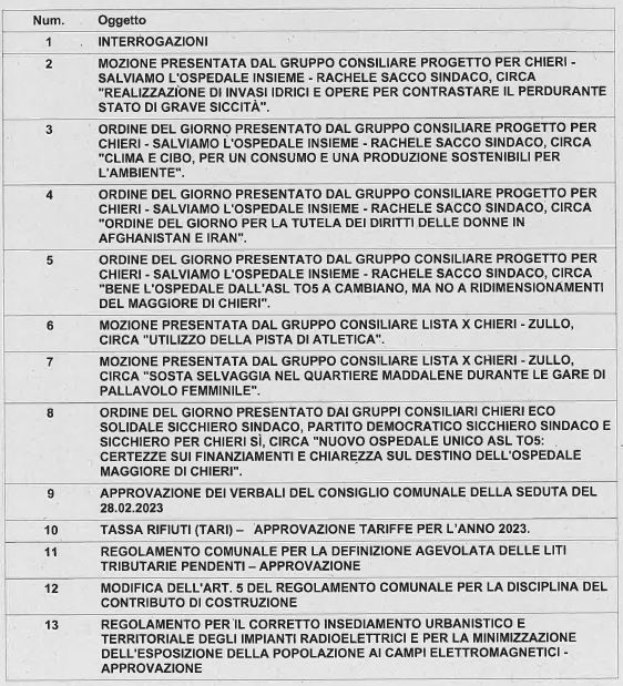 Il consiglio comunale di Chieri è convocato giovedì 30 e venerdì 31 marzo per discutere l’ordinbe del giorno che pubblichiamo.