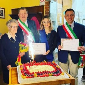 È stata festeggiata da tutta la famiglia, nella bellissima location dei Vigneti Brichet e al termine ad attenderla una mega torta con il numero 100 e un bel mazzo di fiori. Presenti oltre al sindaco Michael Vitello, Angelica Corino, in rappresentanza della Provincia di Asti che le hanno donato una pergamena per ricordare il lieto evento e il vicesindaco di Calosso Angelo Grasso, in rappresentanza del suo paese natale.