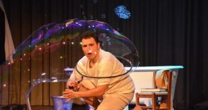 Un pomeriggio per parlare ai più piccoli delle emozioni attraverso una storia immaginaria, nella quale gli spettatori vengono trasportati – tra attimi di pura poesia e momenti rocamboleschi e surreali – condividendo il magico mondo delle bolle di sapone.Uno spettacolo dove i più piccini ridono e sgranano gli occhi dinanzi alle mosse del clown e alle sue incredibili bolle, enormi o a raffica, che prendono il volo nel corso dello spettacolo. Ma anche gli adulti che li accompagnano si lasciano ipnotizzare dalla meraviglia e dalla leggerezza della performance, che li aiuta a sollevare, per un istante, lo sguardo dall’orizzonte della routine quotidiana.