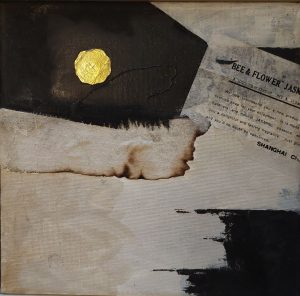 Con un catalogo a cura di Gian Giorgio Massara e Angelo Mistrangelo, la mostra intitolata FRAMMENTI E ORIZZONTI DI MEMORIA, le storie nascoste sulle tele di  Vittorio Marchis, presenta una ricca rassegna di dipinti realizzati dall’autore negli anni 2021 e 2022. Questa mostra rappresenta un caso particolare perché l’autore ha una particolare “storia”. Laureato in ingegneria, professore ordinario di Meccanica al Politecnico di Torino, da tempo ha mutato la sua professione a quella di storico della scienza e proprio in questa veste la “memoria” ha assunto un ruolo centrale. Come scrive Gian Giorgio Massara “studiando le opere di Vittorio, ci si avvede che sono composte da materiali vari, spesso divenuti fragili ma ancor ricchi di storia, da improvvisi segnali colore del fuoco a squarciare la monocroma composizione. Infine, il nero, divenuto colore primario e anch’esso memoria. Vittorio Marchis considera profondamente la storia, sia essa contenuta in un libro, sul filo di svanire, dedicato ai “Mostri” marini, in un consunto brandello di lino a evocare l’idea del Sudario, nei frammenti di pagine antiche.” I frammenti di vecchie carte possono così rivivere di una vita nuova e trasfigurarsi. A integrazione degli oli e degli acrilici, in una vetrina sono anche riportati alcuni quaderni che l’autore da anni compila e porta con sé, cahier de voyage che segnano il suo percorso narrativo per immagini.