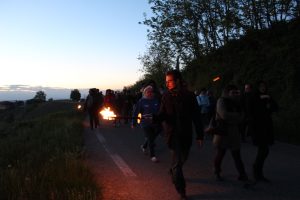 Ritrovo e distribuzione fiaccole prima della partenza della marcia commemorativa dal centro di Treiso a piedi fino al pilone votivo dei Canta, la cappella in memoria dei partigiani caduti nei territori di Treiso, Barbaresco e Trezzo Tinella.