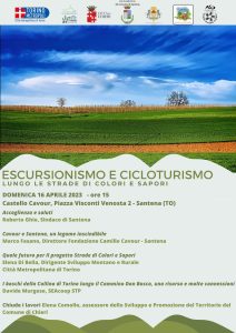 In occasione di “Cammina Santena”, che avrà luogo domenica 16 aprile, nel Salone Diplomatico di Palazzo Cavour si svolgerà un convegno sul futuro del progetto “Strade di Colori e Sapori”: saranno presentati gli esiti dello studio relativo alla valutazione delle possibilità di gestione associata delle aree boscate ricadenti lungo l’itinerario escursionistico “Cammino Don Bosco”.