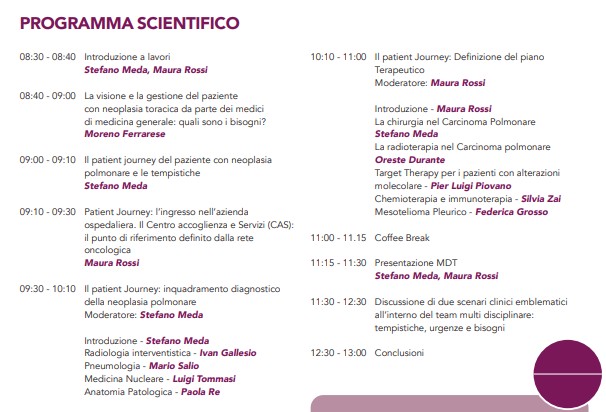 Dalle 8,30 alle 13,00 saranno affrontati vari aspetti del carcinoma polmonare, che in Italia è considerato ancora un big killer, con alti tassi di incidenza e di mortalità.
