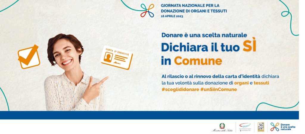 “Donare è una scelta naturale” e “Dichiara il tuo Sì in Comune” sono la sintesi di un’opportunità offerta ad ogni cittadino maggiorenne che può con naturalezza scegliere di salvare molte vite, donando i propri organi dopo la morte, e può farlo facilmente, dichiarando il proprio “sì” in occasione del rinnovo della carta d’identità.