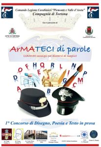 Domani, 15 aprile 2023, si terrà a Tortona, in via Carducci, la premiazione degli studenti vincitori di “ArMAteci di parole”, un concorso artistico letterario organizzato dalla compagnia Carabinieri di Tortona rivolto agli alunni delle classi quarte della scuola primaria, delle classi prime della secondaria di primo grado (medie) e delle classi terze delle scuole superiori e di formazione professionale.