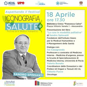 Nelle sale della Biblioteca Civica “Francesca Calvo” di Alessandria, dopo i saluti istituzionali, dialogheranno con Sandro Spinsanti, Ivo Casagranda, professore a contratto di Medicina Interna – Medicina d’urgenza presso la Scuola di Specializzazione di Medicina Interna dell’Università di Pavia, Valeria Bonato, coordinatore delle Donazioni e dei Prelievi di Organi e Tessuti dell’Azienda Ospedaliera di Alessandria e l’oncologo Vittorio Fusco.