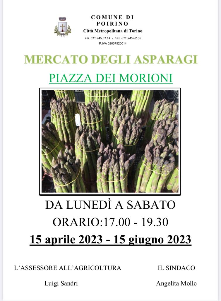 Dal 15 aprile al 15 giugno si svolge in Piazza Morioni a Poirino – dalle 17.00 alle 19.30 – il tradizonale mercato dei produttori con vendita di asparagi.