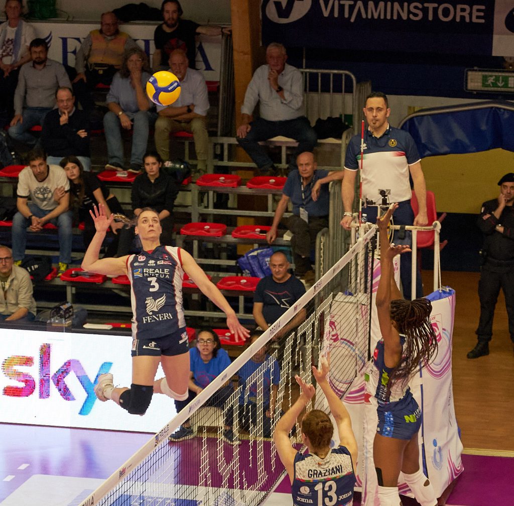 Reale Mutua Fenera Chieri ’76-Il Bisonte Firenze 0-3 (19-25; 18-25; 19-25) REALE MUTUA FENERA CHIERI ’76: Morello, Grobelna 11, Butler, Weitzel 9, Cazaute 7, Villani 5; Spirito (L); Bosio, Storck 5, Rozanski 4, Kone, Nervini. N. e. Mazzaro, Fini (2L). All. Bregoli; 2° Piazzese. IL BISONTE FIRENZE: Malinov 3, Sylvia Nwakalor 15, Graziani 10, Alhassan 6, Herbots 14, Van Gestel 7; Panetoni (L); Kosareva, Knollema 1. N. e. Guiducci, Sylves, Lotti, Adelusi, Lapini (2L). All. Parisi; 2° Cervellin. ARBITRI: Caretti di Roma e Mattei di Treia. NOTE: presenti 538 spettatori. Durata set: 22’, 26’, 22’. Errori in battuta: 13-10. Ace: 3-4. Ricezione positiva: 66%-64%. Ricezione perfetta: 41%-33%. Positività in attacco: 38%-48%. Errori in attacco: 3-5. Muri vincenti: 5-11. MVP: Herbots.