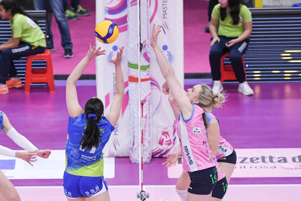 WASH4GREEN PINEROLO: Grajber 3, Prandi 1, Zago 12, Gray 3, Akrari 8, Ungureanu 7, Gueli (L), Bussoli (L), Renieri 2, Miao 1, Carletti 6, Bortoli. All. Marchiaro.