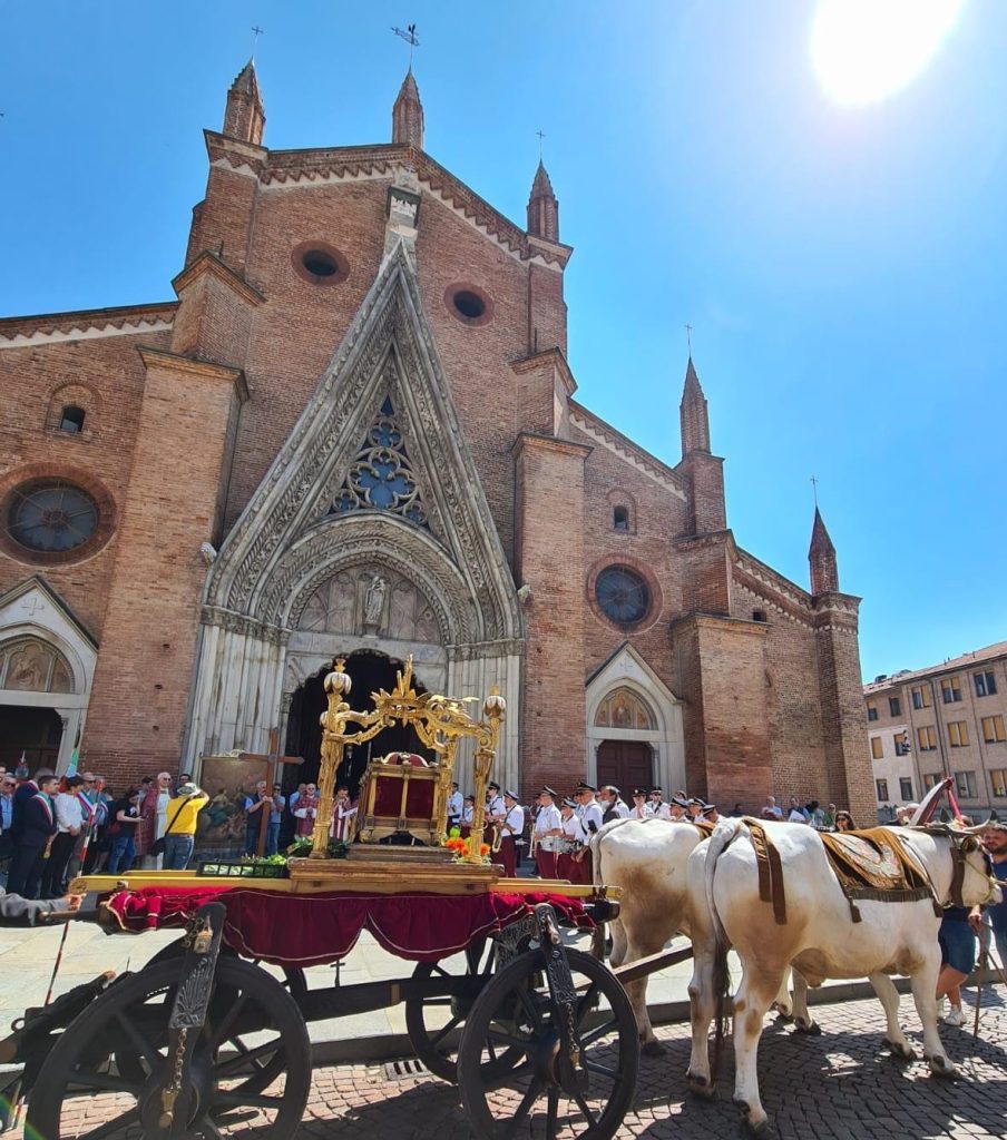 Da otto secoli la popolazione del contado chierese celebra i Santi Giuliano e Basilissa e invoca la protezione per i campi e i raccolti con una processione che vede un carro trainato da buoi bianchi trasportare la teca con le reliquie dei Santi attraverso le vie del centro cittadino, accompagnato dal clero, dai membri della Compagnia dei Santi Giuliano e Basilissa, dalle autorità civili, dai massari e dalla popolazione.