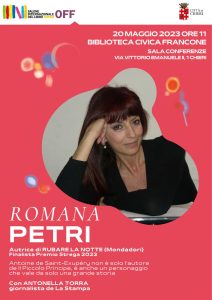Salone OFF – SABATO 20 MAGGIO 2023 – ORE 11.00. Incontro con Romana PETRI. Biblioteca Civica (via Vittorio Emanuele II, 1) – CHIERI