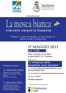 Parlare di disabilità e inclusione è l’obiettivo del progetto La Mosca Bianca in collaborazione tra il Comune di Santena e l’Associazione Vivere. Il primo incontro sarà il 17 maggio alle ore 17, nella Sala del Consiglio Comunale di Santena in piazza Martiri 39.