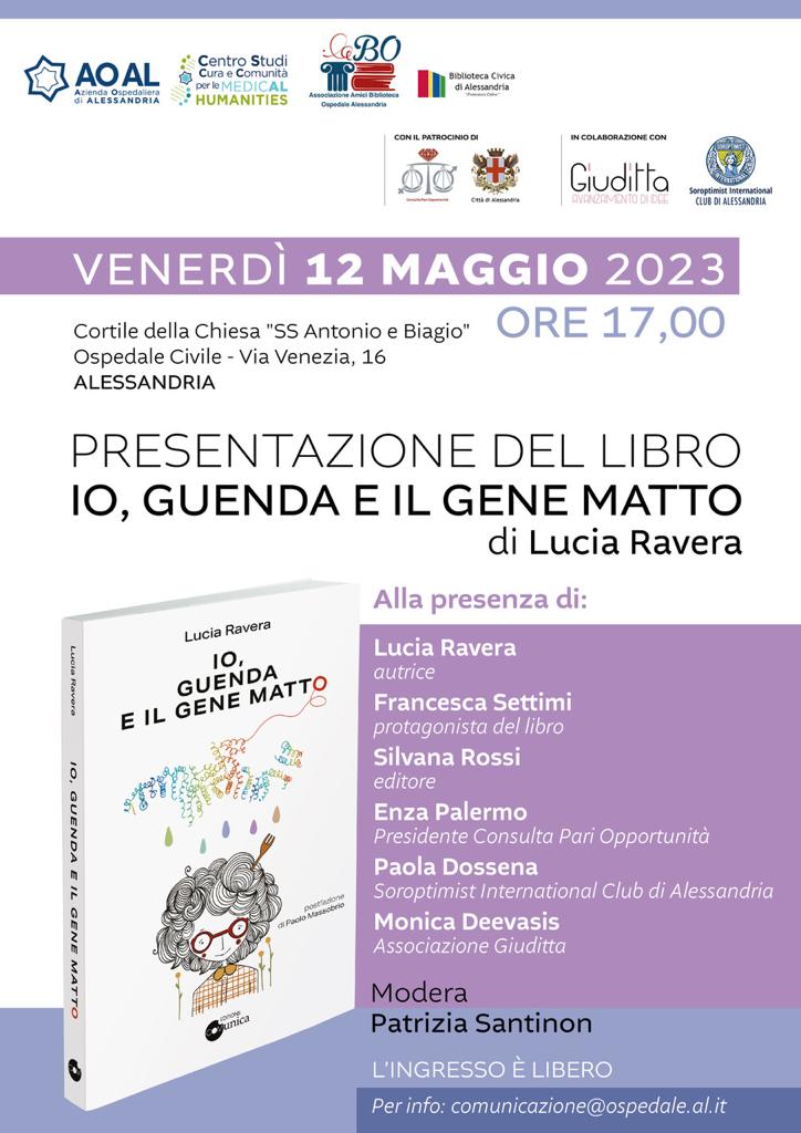 Nella suggestiva cornice del cortile della chiesa SS Antonio e Biagio dell’Azienda Ospedaliera di Alessandria sarà presentato, venerdì 12 maggio, il libro di Lucia Ravera “Io, Guenda e il gene matto”.