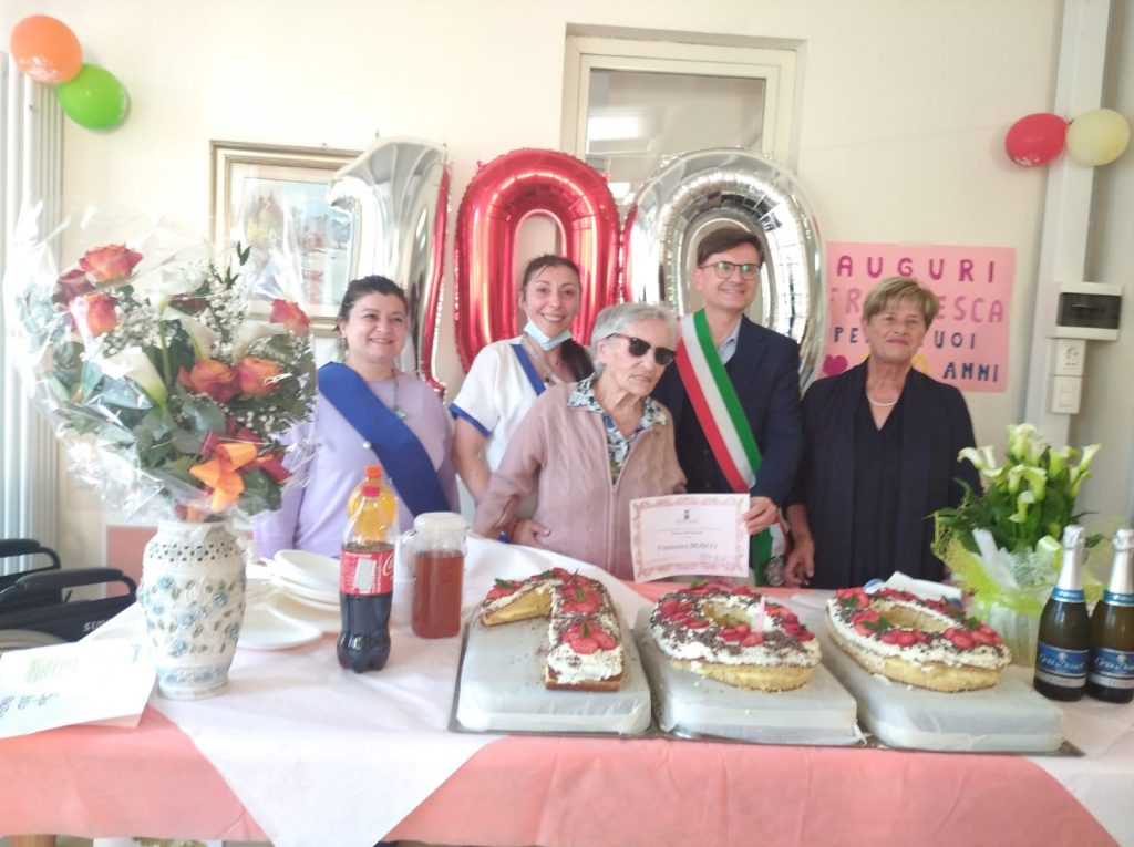 Nella foto con la neocentenaria le autorità intervenute e le operatrici della struttura.