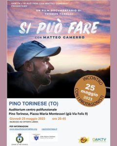 Giovedì 25 maggio ore 20.45 l’Auditorium del Centro Polifunzionale Comunale di Pino Torinese ospiterà la proiezione del film 𝑺𝑰 𝑷𝑼𝑶’ 𝑭𝑨𝑹𝑬, che racconta la storia di Matteo Gamerro che, a bordo della sua Joelette (la carrozzina che aiuta i disabili ad andare per sentieri) affronta la vita e la malattia con il sorriso, attraversando l’Europa!