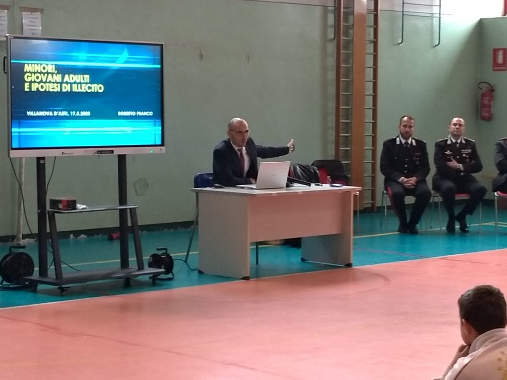 La divulgazione della cultura della legalità è stato l’obiettivo strategico che ha portato la scuola ad organizzare gli incontri con i Carabinieri del Comando di Villanova d’Asti, la Dott.ssa Giulia RIZZO, Pubblico Ministero presso la Procura della Repubblica di Torino, la Dott.ssa Valentina CARATTO, Giudice presso il Tribunale per i Minorenni di Torino e l’Avvocato Roberto FRANCO del Foro di Torino.
