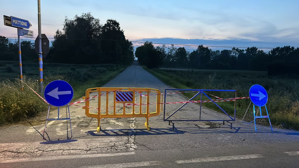 Maltempo, chiuso un tratto di strada Collarelle a Levaldigi