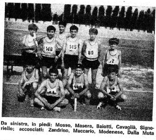 provinciale CSI. Due vittorie dei fratelli Pertusio, Flavio e Silvio, nelle categorie ragazzi e juniores del getto del peso. Due ottimi secondi posti ottenuti da Claudio Romano negli 80 metri piani e da Ignazio Virzi nei 1.000, con Giorgio Chignasco terzo. Terzi anche nel salto in alto Giovanni Masera e Pierluigi Ercules (ragazzi e allievi). Guido Maccario vincitore della sua batteria negli 80 mt., quarto in finale.
