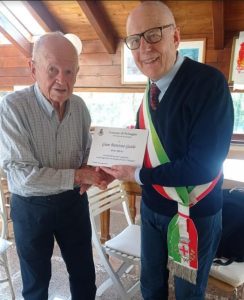 Ancora tanti auguri, Mario, con le più vive congratulazioni per come sei arrivato ai cent’anni e buon proseguimento delle tue attività, scusandomi per aver interrotto quelle nell’orto quando sono venuto a consegnarti la targa.”