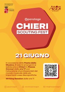 Mercoledì 21 giugno 2023- Piazza Cavour – ore 17.00: CHIERI SCOUTING FEST – OPEN STAGE. Un talent a cielo aperto per gli artisti locali. Otto talenti emergenti si esibiscono in piazza Cavour tramite un totem tecnologico
