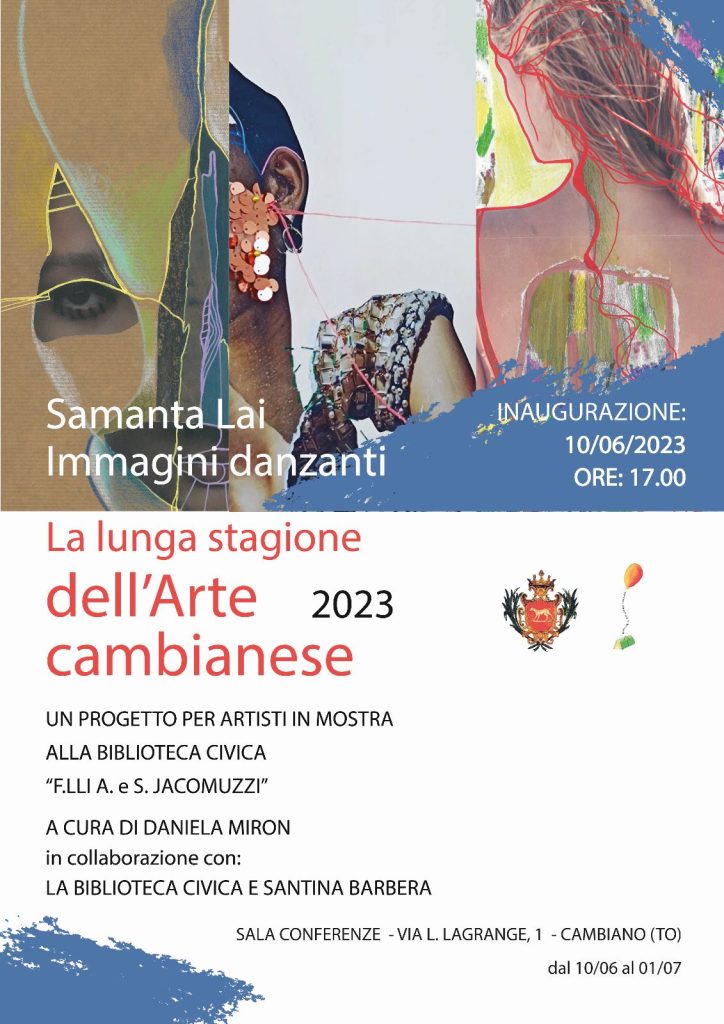 Prosegue la stagione d’arte a Cambiano con la mostra “Immagini danzanti” dell’ artista Samanta Lai che si inaugurerà sabato 10 giugno alle ore 17,00 nella sala conferenze della Biblioteca Civica di Cambiano.