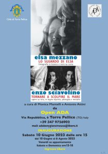 Presso Open ADA di via Repubblica 6 a Torre Pellice, convivono al piano superiore ben ventiquattro fotografie b/n di Mezzano, su carta pregiata e sviluppate dall’Autrice in camera oscura (formato 60 × 80) oltre a una grande immagine su tela, precedentemente esposta alla Biennale di Venezia nel ’78. Al piano terra invece campeggiano una ventina di opere di Sciavolino, tra arazzi stampati su tela, grandi medaglioni pendenti in plexiglass, mobili-scultura in legno, oltre a busti, testine e una incisione.