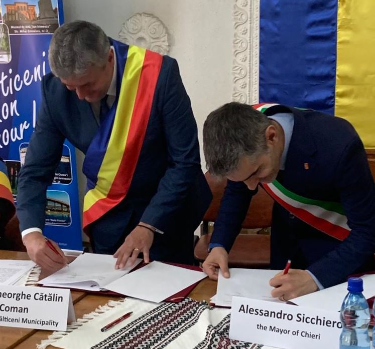 In occasione del festival “Giorni della cultura”, una delegazione di Chieri si è recata in visita a Fălticeni, città situata nel nord-est della Romania, nel distretto di Suceava. La delegazione, guidata dal sindaco Alessandro Sicchiero e dalla consigliera comunale Daniela Sabena, delegata ai Gemellaggi e ai rapporti internazionali, è stata accolta dal sindaco e dall’amministrazione comunale di Falticeni per la firma di un patto di gemellaggio con la città, che si trova in una zona della Romania da dove sono originari molti dei nostri concittadini.