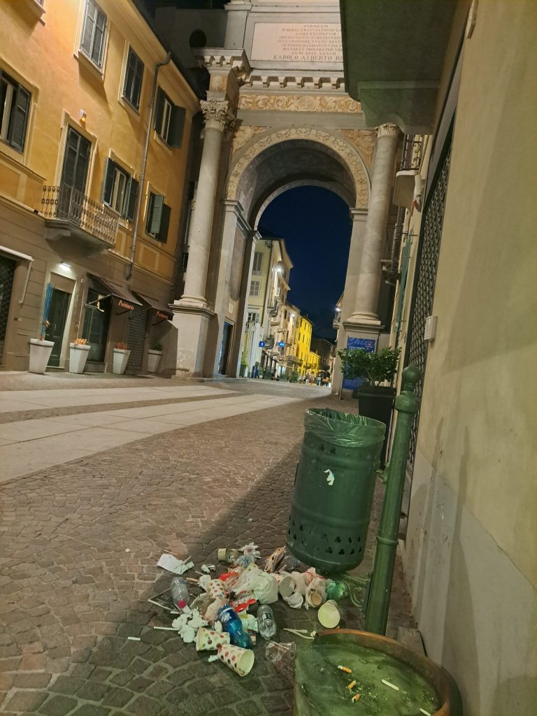 “Tutti chiediamo che Chieri abbia un centro storico più vivace e vissuto, ma questo non ha niente a che vedere con l’inciviltà di qualcuno. Che a due passi dall’Arco, chi passeggia con un gelato si trovi uno spettacolo simile, con rifiuti gettati sfrontatamente in mezzo alla strada, quando c’è un cestino, vuoto, che è messo lì apposta per raccoglierli, è assurdo…” Testo e foto di una chierese che vorrebbe vivere di più la sua città…