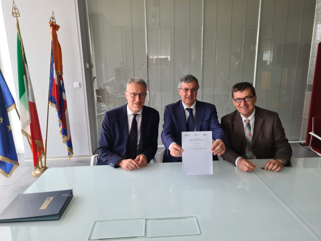 L’assessore regionale alla Sanità del Piemonte, Luigi Genesio Icardi, il sindaco di Cambiano, Carlo Vergnano e il direttore generale dell’Asl To5, Angelo Pescarmona, hanno firmato questa mattina nel Grattacielo della Regione Piemonte a Torino il protocollo d’intesa per la realizzazione del nuovo ospedale unico dell’Asl To5.