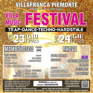 Venerdì 23 e sabato 24 giugno il comune di Villafranca Piemonte ospiterà nel Piazzale Pala Bus Company (Via Brigata Alpina Taurinense, 11 Torino) il Villa Music Festival. Si tratta di due serate, organizzate dalla Pro loco e patrocinate dal comune di Villafranca, dedicate alla musica trap, techno e l’hardstyle che vedranno protagonisti i trapper italiani Mambolosco e Rhove.Inoltre dalle 19 alle 3 di notte si alterneranno sul palco dj di fama internazionale come Greta Tedeschi, Bismarck, Mad Bob e Francesco Zeta.“Al termine dell’anno scolastico abbiamo pensato ad un festival che permettesse agli studenti di festeggiare” spiega Agostino Bottano, sindaco di Villafranca Piemonte.“Per la scelta degli artisti ci siamo affidati a un gruppo di giovani in modo da intercettare i loro gusti e per un mese abbiamo assieme preso in considerazione alcune ipotesi” aggiunge l’assessore alle manifestazioni Flavio Vaschetto.Durante entrambe le serate sarà garantita nello spazio del piazzale del Pala BusCompany un’area ristoro per i genitori che accompagnano i figli. Saranno infatti almeno quaranta i volontari della Pro loco che per tutta la durata del festival assicureranno il servizio come spiega Franca Alciato, presidente dell’associazione.I biglietti sono disponibili al seguente link https://oooh.events/evento/villamusic-festival-biglietti-2/. Sono inoltre previste delle tariffe speciali per i primiduecento e per chi parteciperà ad entrambe le serate. Per ulteriori informazioni:contattare il numero 335 6849445.