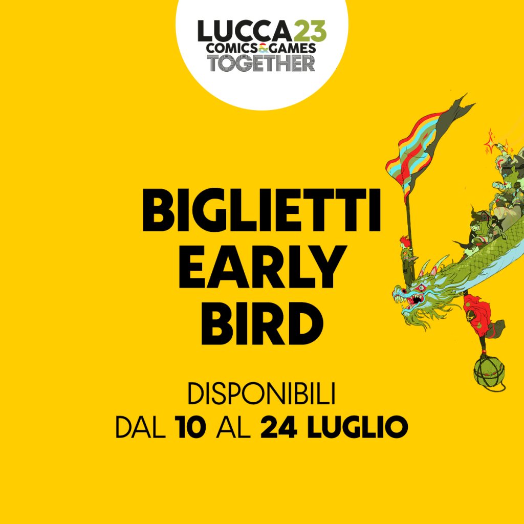Da lunedì 10 luglio alle 15.00 a lunedì 24 luglio alle 24.00 saranno in vendita i biglietti Early Bird di Lucca Comics & Games 2023 al link: www.ticketone.it/LuccaCG23