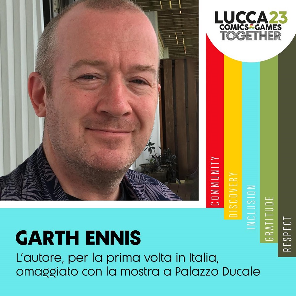 A Lucca Comics & Games 2023 arriverà per la prima volta in Italia anche uno dei più importanti sceneggiatori del fumetto made in USA – se pure è originario dell’Irlanda del Nord – in collaborazione con Panini Comics e saldaPress: il grande Garth Ennis, autore di serie potenti e irriverenti come Preacher (DC-Vertigo), The Boys (Dynamite) e The Pro (Image), e di altrettanto potenti e indimenticabili saghe per Hellblaser (DC-Vertigo), The Punisher e Fury (Marvel), solo per citarne alcune. A Lucca Comics & Games sarà possibile vedere dal vivo alcune delle sue tavole più iconiche, esposte in mostra a Palazzo Ducale.