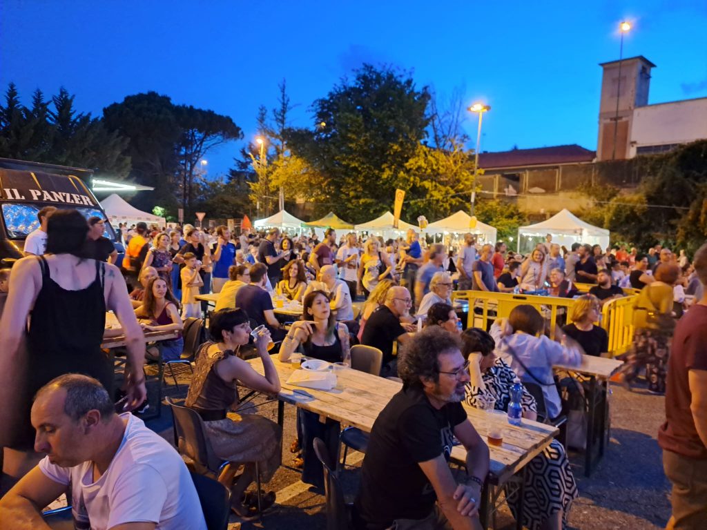 “BicChieri di Birra” nell’area ex Tabasso. Dopo la pioggia della prima serata, a Chieri, il pienone della seconda, con il concerto di Lou Dalfin anche stavolta accompagnato a Chieri da stuoli di fans innamorati della musica e dei balli occitani. Tanta, tantissima gente ai tavoli, con fiumi di birra e tanto street food, e operatori della ristorazione soddisfatti. La Pro Chieri ha fatto ancora centro, ma…”lo spazio dell’area ex Tabasso è sempre più inadeguato quando gli eventi richiamano così tanta gente”, il commento di Piero Tamagnone, presidente della Pro Chieri. Che ci scherza su: “Per rispettare appieno le regole sulla sicurezza, in futuro, c’è da scegliere tra un’area più grande e capiente o spettacoli di minor richiamo…”. Mal contati, erano più di mille per i Lou Dalfin. Il programma delle altre serate: stasera giovedì la dance con i Divina, venerdì le cover di Vasco Rossi con la Combricola del Blasco e sabato gran finale con la tribute band dei Pink Floyd.