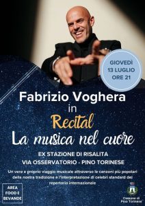 Pino Torinese. Giovedì 13 luglio recital “La musica nel cuore” con il cantante Fabrizio Voghera