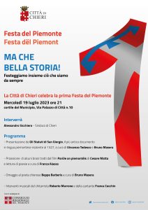 Mercoledì 19 luglio, alle ore 21, presso il cortile del Municipio, in via Palazzo di Città 10, la Città di Chieri celebra la prima Festa del Piemonte.
