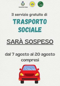 Si avvisa che 𝐢𝐥 𝐬𝐞𝐫𝐯𝐢𝐳𝐢𝐨 𝐠𝐫𝐚𝐭𝐮𝐢𝐭𝐨 𝐝𝐢 𝐭𝐫𝐚𝐬𝐩𝐨𝐫𝐭𝐨 𝐬𝐨𝐜𝐢𝐚𝐥𝐞 rivolto agli anziani autosufficienti, alle persone con disabilità autosufficienti e ai minori e persone non autosufficienti con accompagnatore proprio, che siano residenti nel Comune di Pino Torinese, 𝐬𝐚𝐫𝐚̀ 𝐬𝐨𝐬𝐩𝐞𝐬𝐨 𝐝𝐚𝐥 𝟕 𝐚𝐠𝐨𝐬𝐭𝐨 𝐚𝐥 𝟐𝟎 𝐚𝐠𝐨𝐬𝐭𝐨 𝐜𝐨𝐦𝐩𝐫𝐞𝐬𝐢.