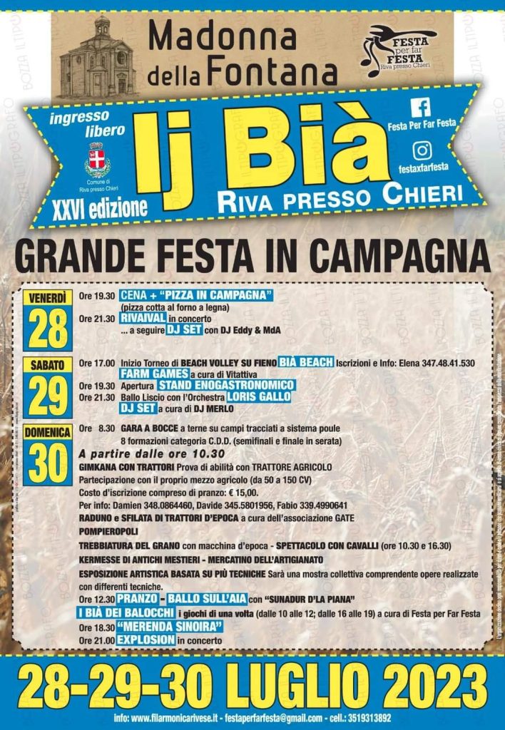 Riva presso Chieri. Madonna della Fontana, la festa dei Bijà dal 28 al 30 luglio di Redazione · 24 Luglio 2023 Visto da: 2.282