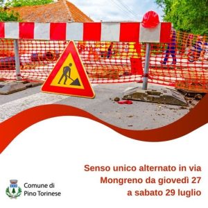 Si avvisa che in Via Mongreno (S.S. n. 10 Padana Inferiore – tratto tra Torino e la Galleria del Pino – dal km 8+600 al km 9+100) verrà istituito un senso unico alternato regolamentato da semaforo e moviere 𝐝𝐚𝐥 𝐠𝐢𝐨𝐫𝐧𝐨 𝟐𝟕/𝟎𝟕 𝐚𝐥 𝐠𝐢𝐨𝐫𝐧𝐨 𝟐𝟗/𝟎𝟕/𝟐𝟎𝟐𝟑, dalle ore 7,00 alle ore 17,00, per il taglio di alberi a margine della sede stradale.
