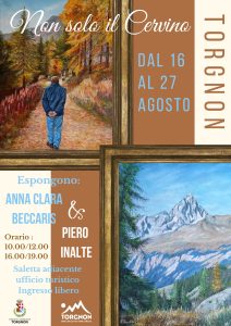 I pittori canellesi Anna Clara Beccaris e Piero Inalte si presentano, per la quinta volta consecutiva , con una mostra di pittura presso la Saletta adiacente l’Ufficio turistico di Torgnon (AO). La mostra resterà aperta dal 16 al 27 agosto con il seguente orario: 10 – 12 e 16 – 19.