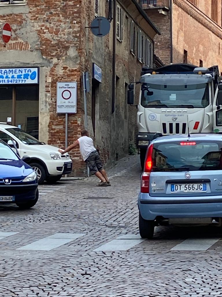 Quando si dice: “Un parcheggio comodo in via Garibaldi a Chieri“. È successo nel pomeriggio di oggi, mercoledì, e il traffico per alcuni minuti è andato in tilt. L’autista del camion è sceso , ha spinto l’auto su via Avezzana, e ha risolto la situazione. Dell’automobilista nessuna traccia.