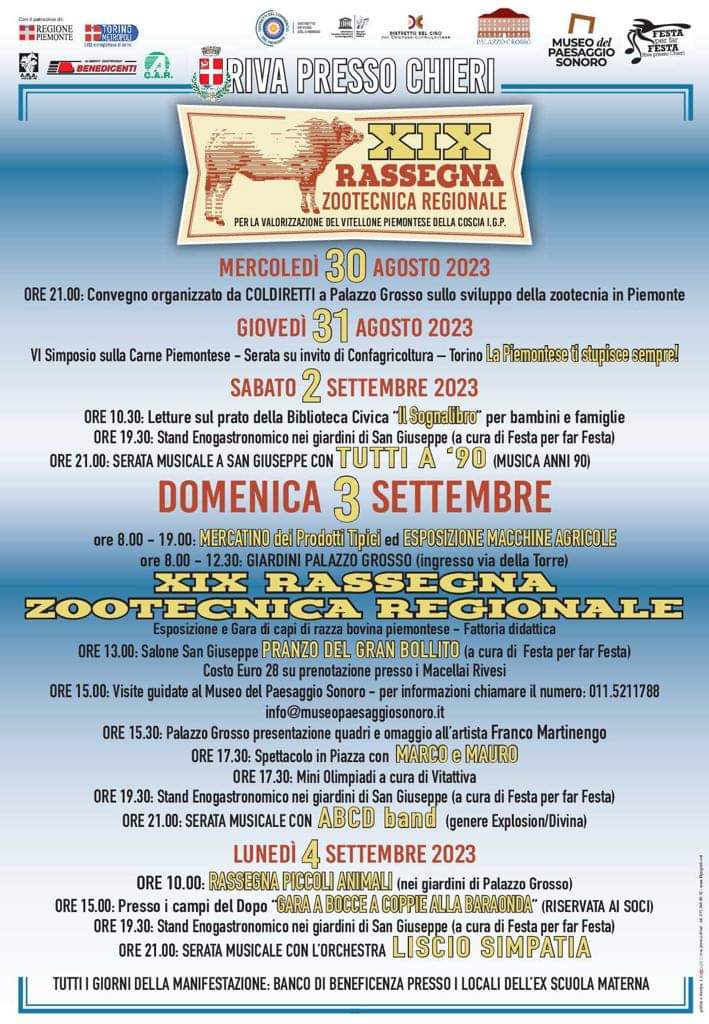 Riva presso Chieri. 19^ edizione della Rassegna Zootecnica Regionale 🗓 di Redazione · 18 Agosto 2023 Visto da: 704 from 30 Agosto 2023 to 4 Settembre 2023 Scheduled CHIERI e CHIERESE