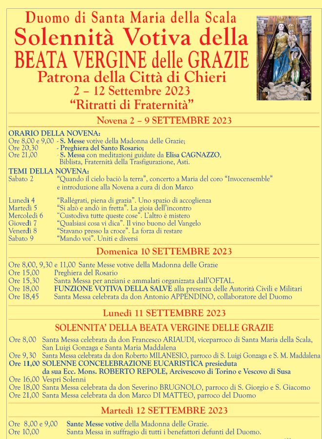 Chieri. Festa della Madonna delle Grazie. Il programma religioso di Redazione · 30 Agosto 2023 Visto da: 551