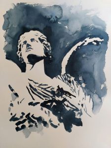 Sarà un viaggio immaginifico nel mondo dell’arte antica – in particolare della scultura classica, rivisitata in chiave moderna – e della poesia. Un percorso intimo “nella plenitudine della luce” attraverso oltre venti opere dipinte ad acquerello e china: figure eroiche e corpi divini, celesti, sacri, il tutto sospeso tra figurazione ed astrazione. E tra un dipinto e l’altro saranno appese, su sottilissimi fili di corda, alcune poesie dell’artista: versi volanti, vibranti e profluvi di emozioni. Una mostra davvero unica nel suo genere.