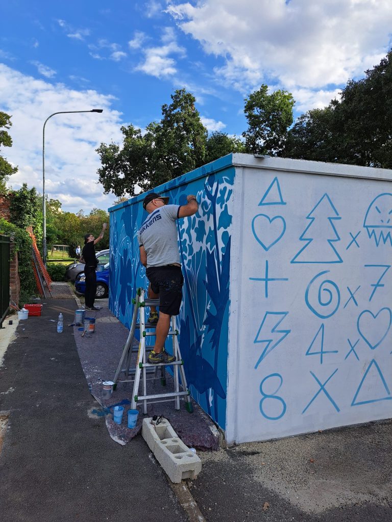 Chieri. Murales sulla cabina elettrica del Parco del Tessile