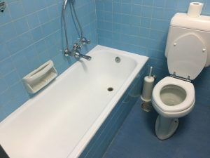 -Non c’è la doccia ma solo una vasca, senza una tenda antispruzzi, quindi quando qualcuno abbastanza coraggioso fa una doccia allaga tutto il pavimento.