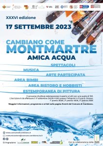 “Cambiano come Montmartre” giunta alla XXXVI edizione prevede il tradizionale concorso di pittura estemporanea a premi e numerose attività e iniziative aperte e a tutti e con il coinvolgimento del pubblico, sul tema dell’anno: “Amica Acqua”