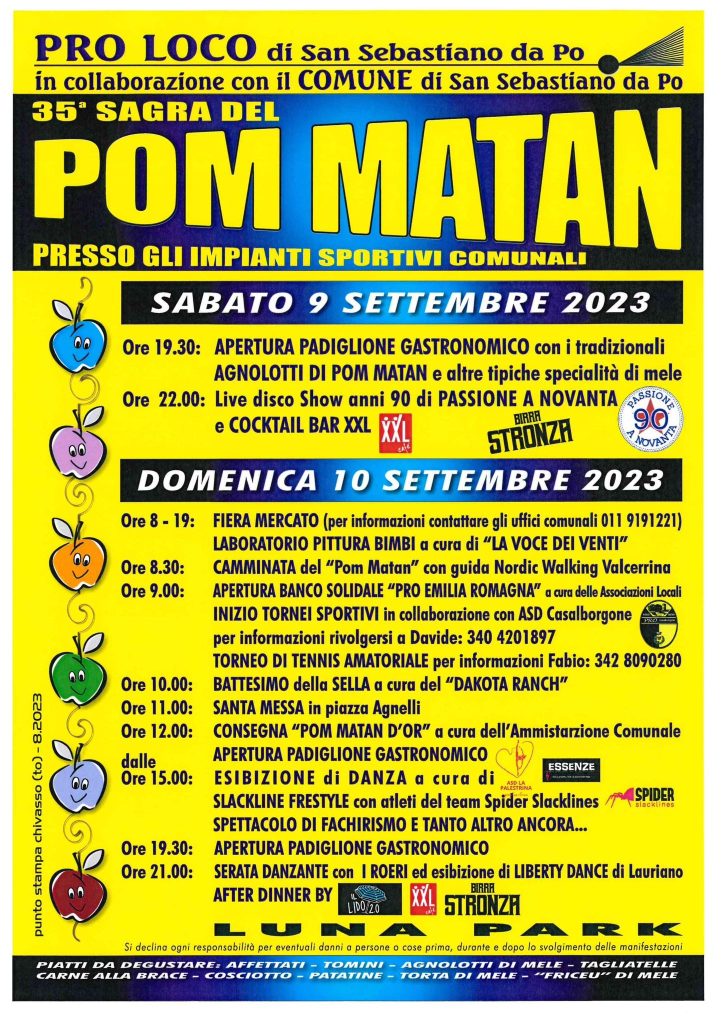 Sagre – Feste – Manifestazioni a : Chatillon, Vezzolano, Castelnuovo Don Bosco, Gassino Torinese, Valfenera (AT), Cuorgnè, Quincinetto, Montechiaro d’Asti.