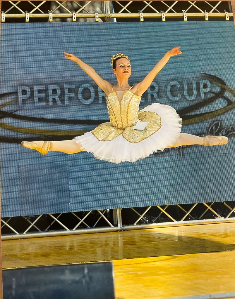 Nel 2021 ha preso parte al campionato Performer Cup della Fipass(federazione internazionale delle arti sceniche sportive) sia con il canto (perché studia anche canto con Dariana Koumanova) e con la danza. Ha iniziato dalle selezioni provinciali, passando successivamente alle regionali e poi ai nazionali. I Nazionali si sono tenuti nel luglio 2021 a Catania dove si è classificata quinta con la danza guadagnando l’accesso alle finali Europee. Queste sono avvenute venerdì 7 luglio 2023 ad Ostia . Ha portato un pezzo di repertorio classico sulle punte: variazione Gamzatti della Bayadere. Durante la finale si è posizionata tra le prime tre più votate quindi domenica 9 luglio ha dovuto nuovamente gareggiare per decretare il podio.