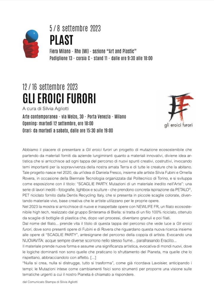 MOSTRA BIPERSONALE DI SILVIA FUBINI E ORNELLA ROVERA: “NEWLIFE. MUTAZIONE DI MATERIALINPER L’ARTE”